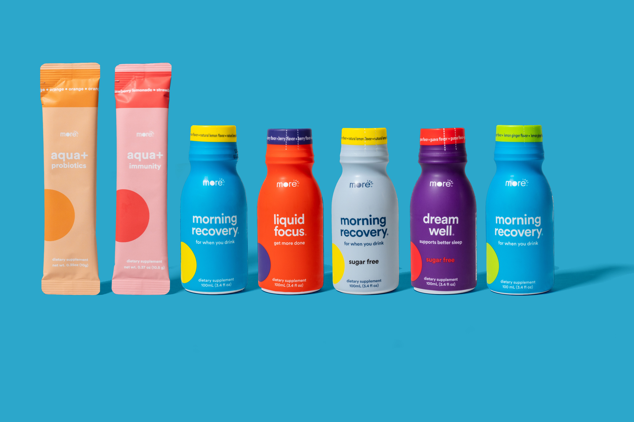 The design of this bottle was inspired by the minimalist aesthetic of More Labs’ original product, Morning Recovery.